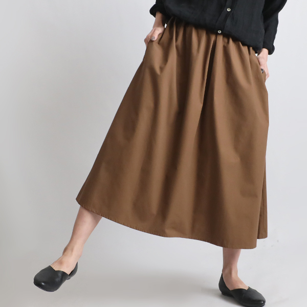 - 秋のスカート祭り すっきり見せ 前後ウエスト内タック入 ロング スカート ベビーキャンバスコットン H63A