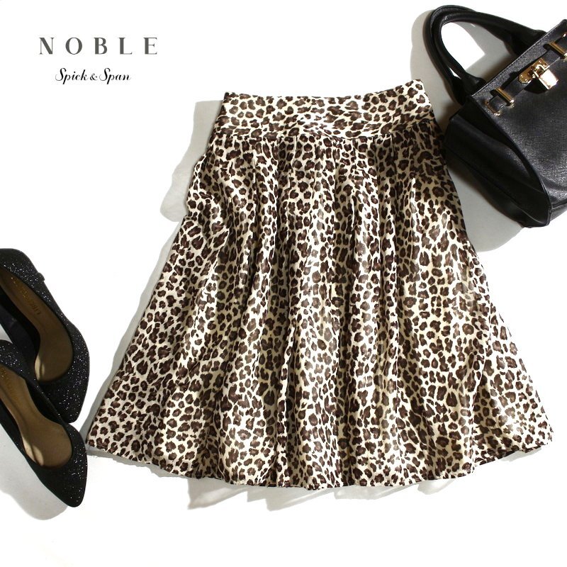 > 美品 Spick & Span NOBLE スピック&スパンノーブル 春 夏 ラメ ヒョウ柄 レオパード シフォン フレアスカート 7号 36 ブラウン ベージュ