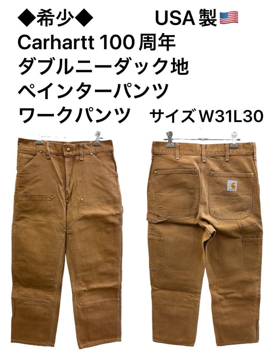 > ◆希少◆ USA製 Carhartt 100周年 ダブルニー ダック地ペインターパンツ ワークパンツ サイズW31L30