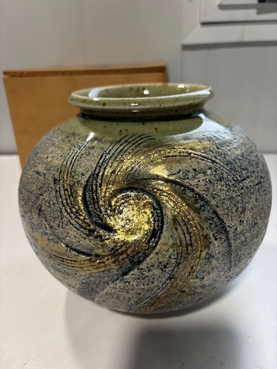 - 1-905-2 信楽焼 花瓶 花器 新品未使用 金彩