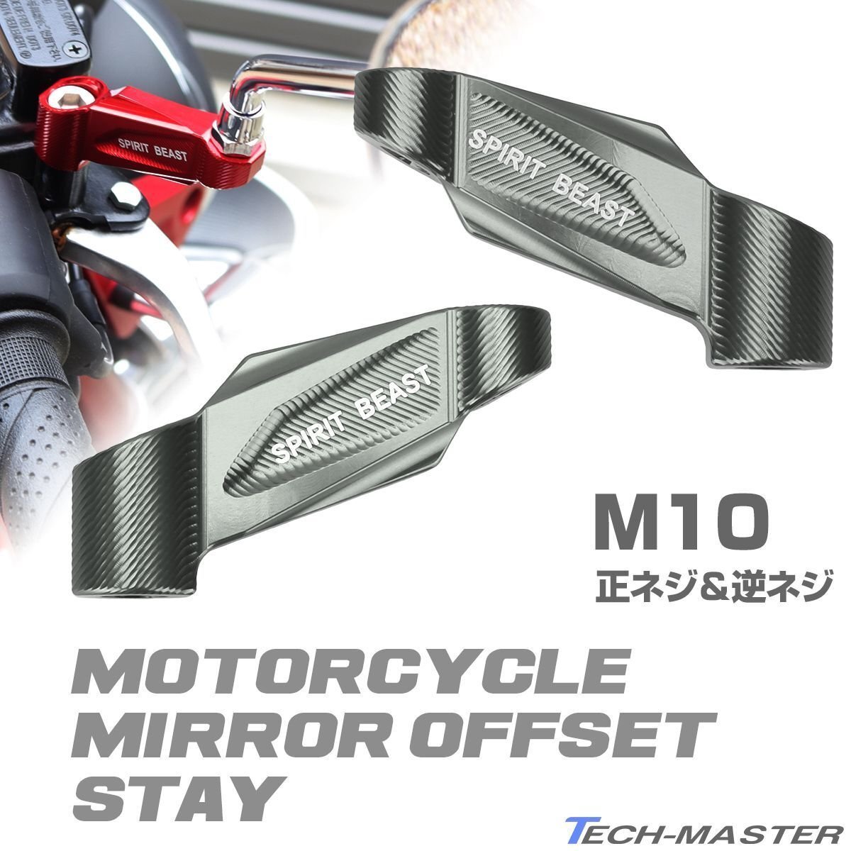 - バイク ミラー延長 アダプター オフセット ステー M10 正ネジ/逆ネジ ダークシルバー 汎用 2個セット SZ924-DS