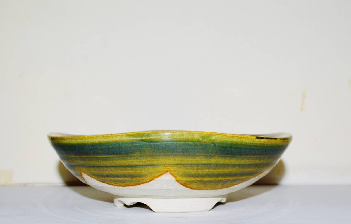 - 希少・50年前後の古い「陶翠」 製作中止盆器 織部釉 角丸形の鉢