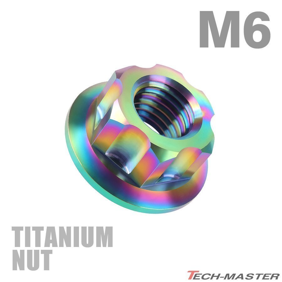 - M6 P1.0 64チタン合金 カッティング 六角デザインナット フランジ付き 焼きチタンカラー ライトカラー 車/バイク ドレスアップ 1個 JA566