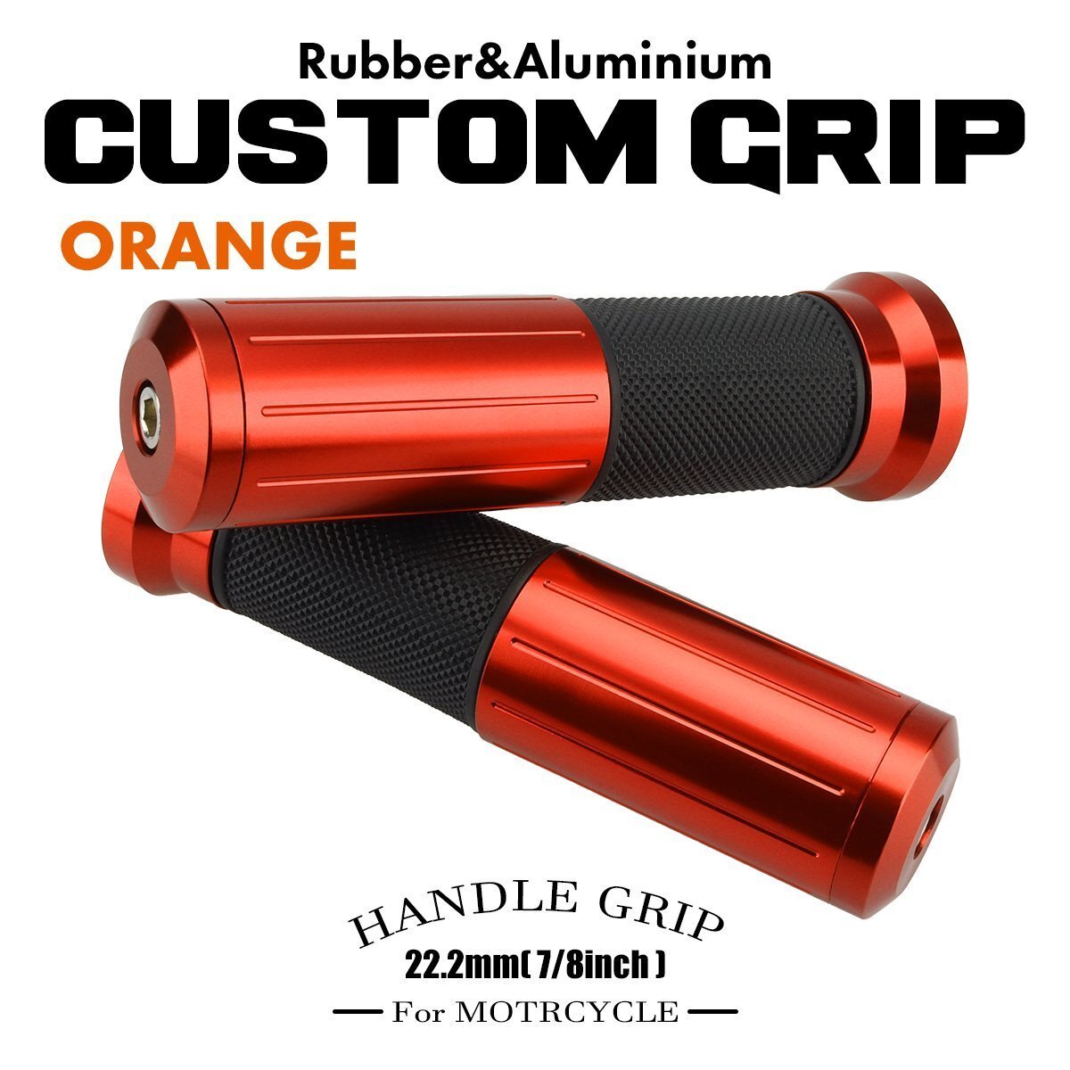 > バイク カスタム グリップ アルミ×ラバー 左右セット バーエンド 付き 非貫通タイプ 22.2mmハンドル用 オレンジ SZ578-O