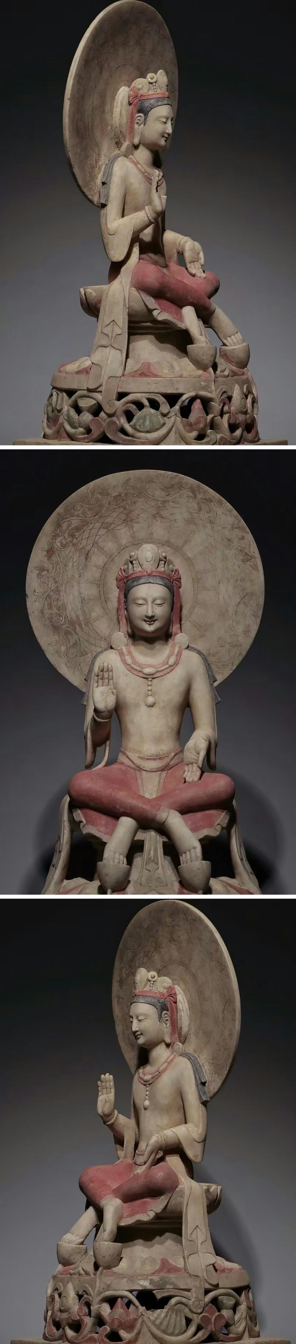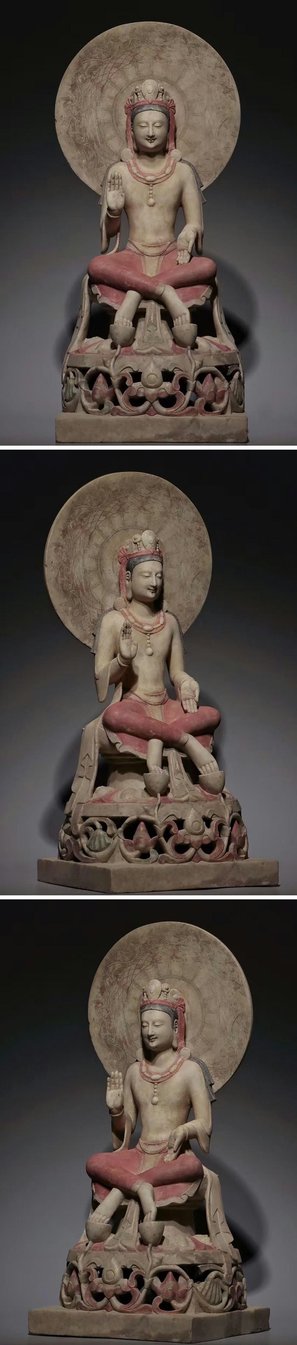 - ■観心・時代旧蔵■K0849北斉 漢白玉彩絵交脚菩薩像 漢白玉石細工彫刻★仏教古美術★仏像★細密細工★廃寺旧蔵★廃寺買出品