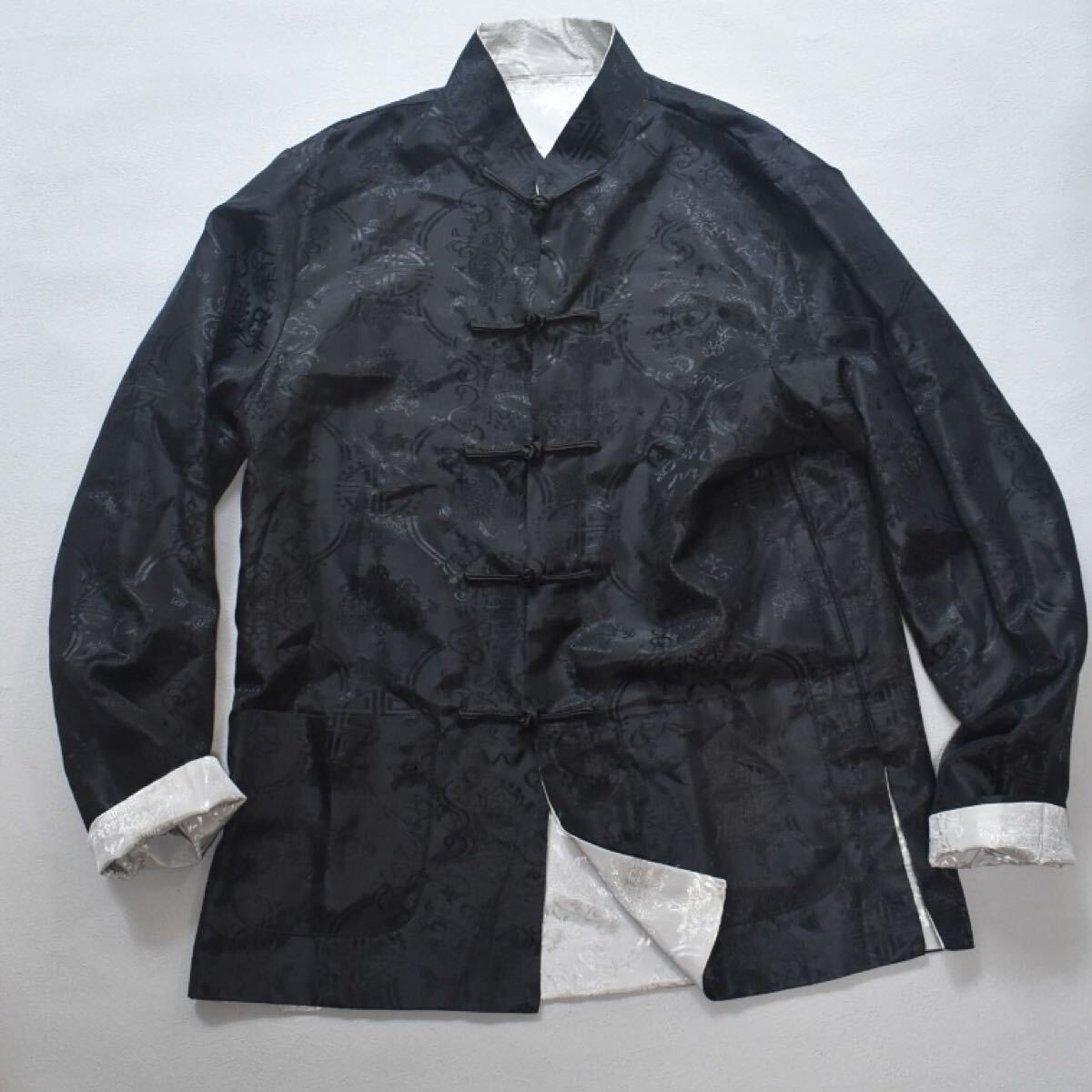 - 未使用級 チャイナジャケット カンフーシャツ リバーシブル 龍柄ジャカード 白黒