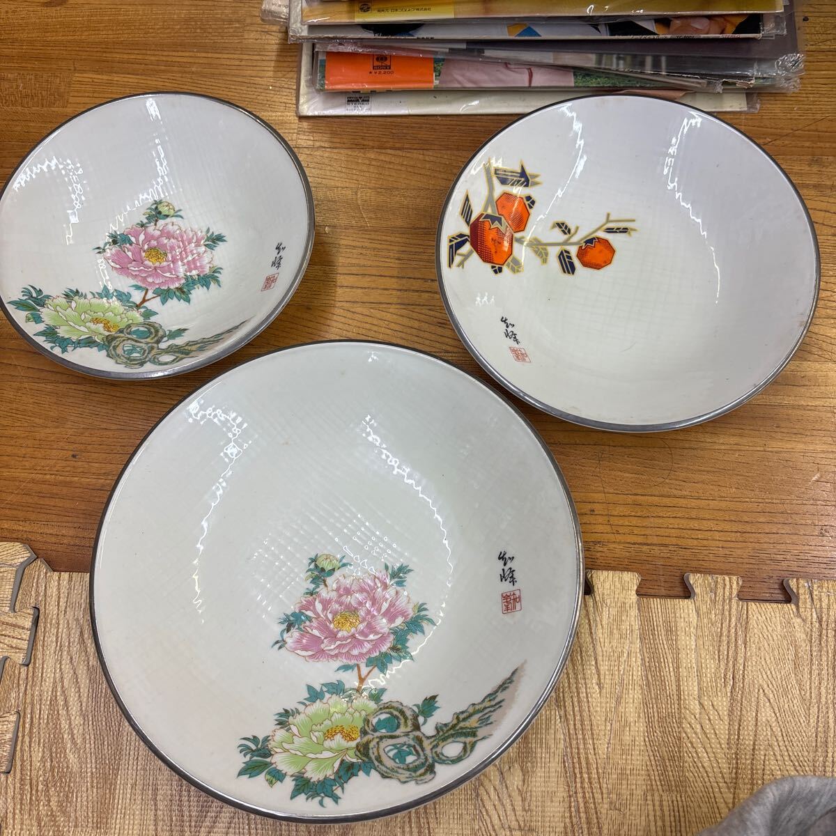 - A1-63 和峰 飾り皿 大皿 中皿 3枚セット 昭和レトロ