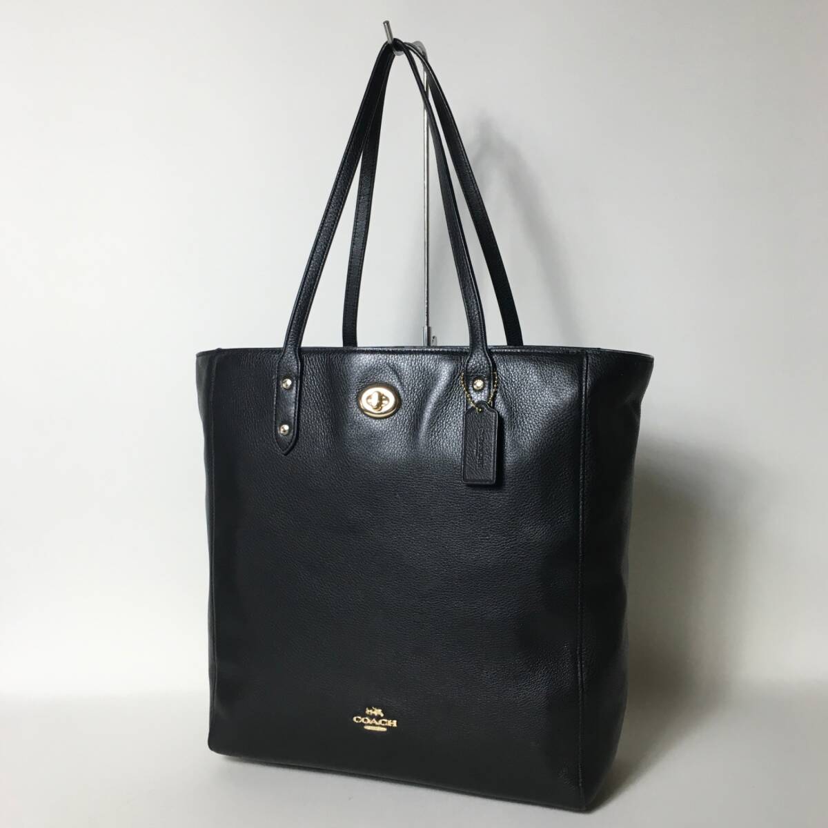 > 2508-267|美品|コーチ トートバッグ レザー ブラック ターンロック
