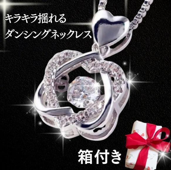 > ダンシングストーンネックレス シルバー高級 CZダイヤモンド ハート モチーフ ネックレス silver925 シルバー925 プレゼント 箱
