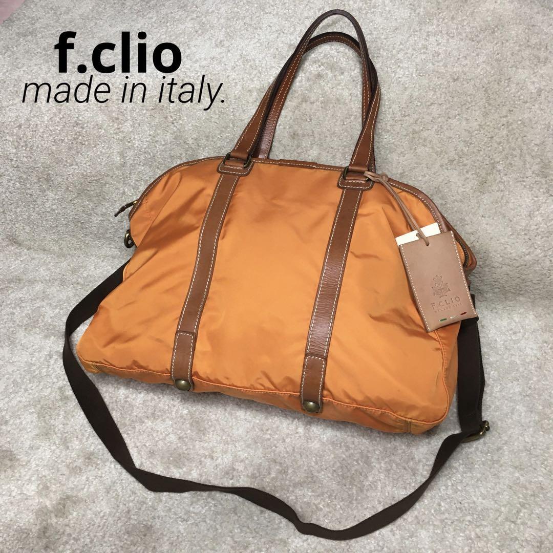 - f.clio イタリア製 ナイロン×レザー ボストン オレンジ ショルダー