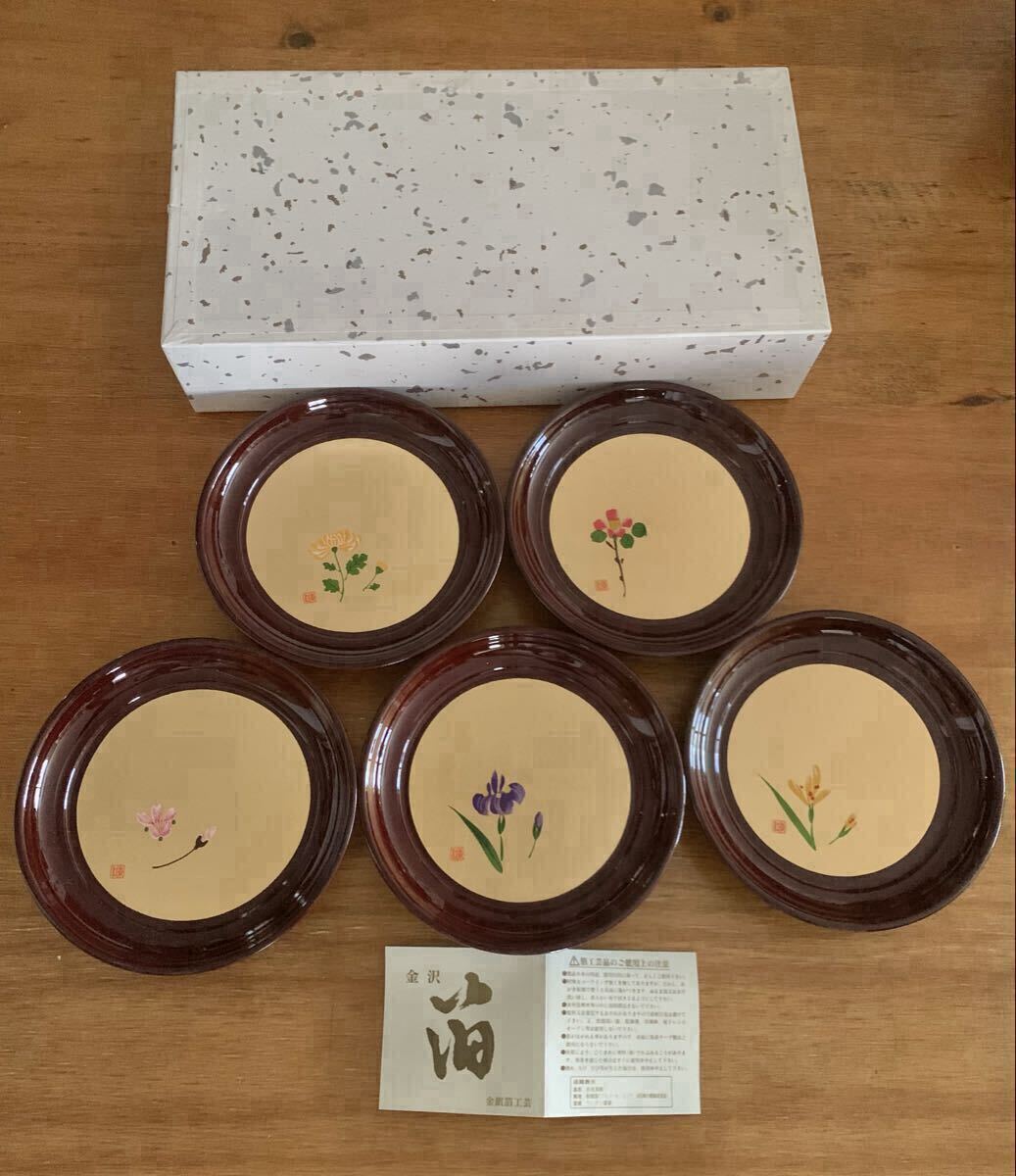 - 椿皿 四季 5枚組 花 銘々皿 金沢箔工芸 漆器 菓子皿 小皿 取り皿 山中漆器 工芸品