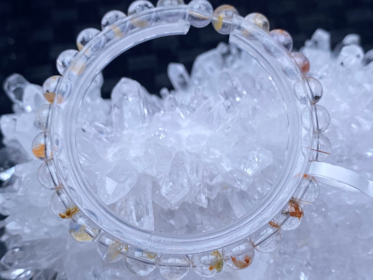> 即決 0613k018 天然石【65Aガーデンクォーツ&デュモルチェライトインクォーツ共生】 ブレス 6.6mm(新品)