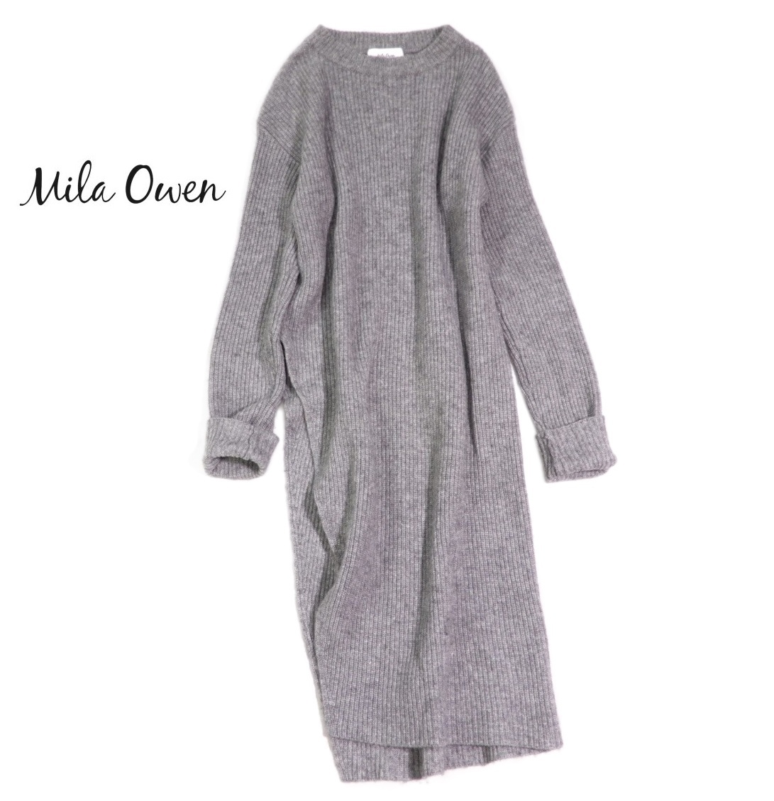 - Mila Owen ミラオーウェン 畦編み スリット ロング ワンピース レイヤードコーデに F