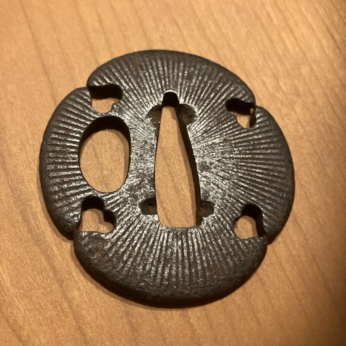- 四方猪目透かし アンティーク 蚤の市 骨董 コレクター 刀装具 刀 日本刀 武具 つば 鍔 JAPAN サムライ 侍 ハートマーク