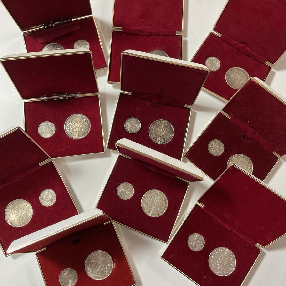 > 1964年 昭和39年 東京オリンピック 記念銀貨 100円 1,000円 銀貨 ケース入り 10個セット 当時物 現状品