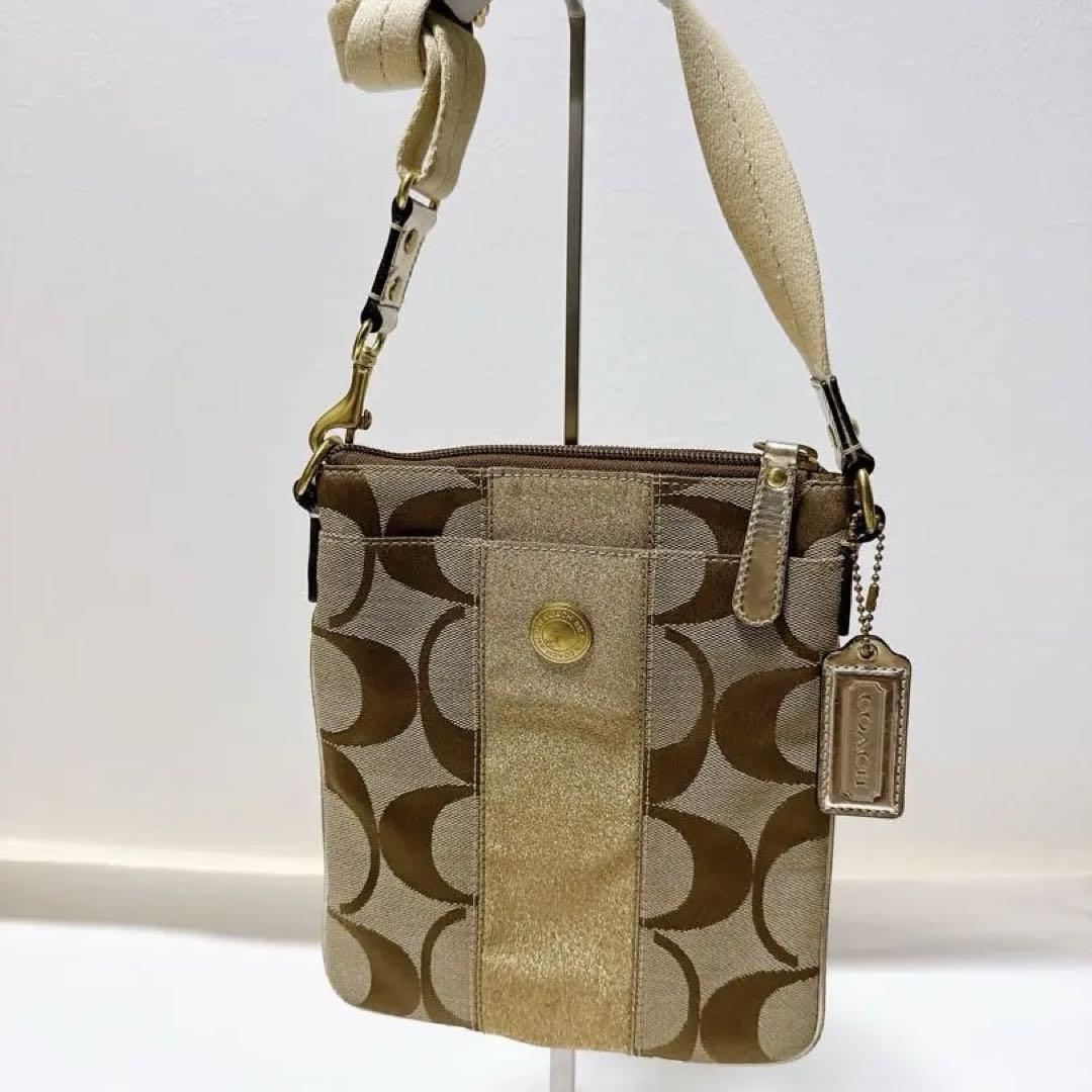 - COACH コーチ ショルダーバッグ シグネチャー ストライプ ゴールド×ピンク