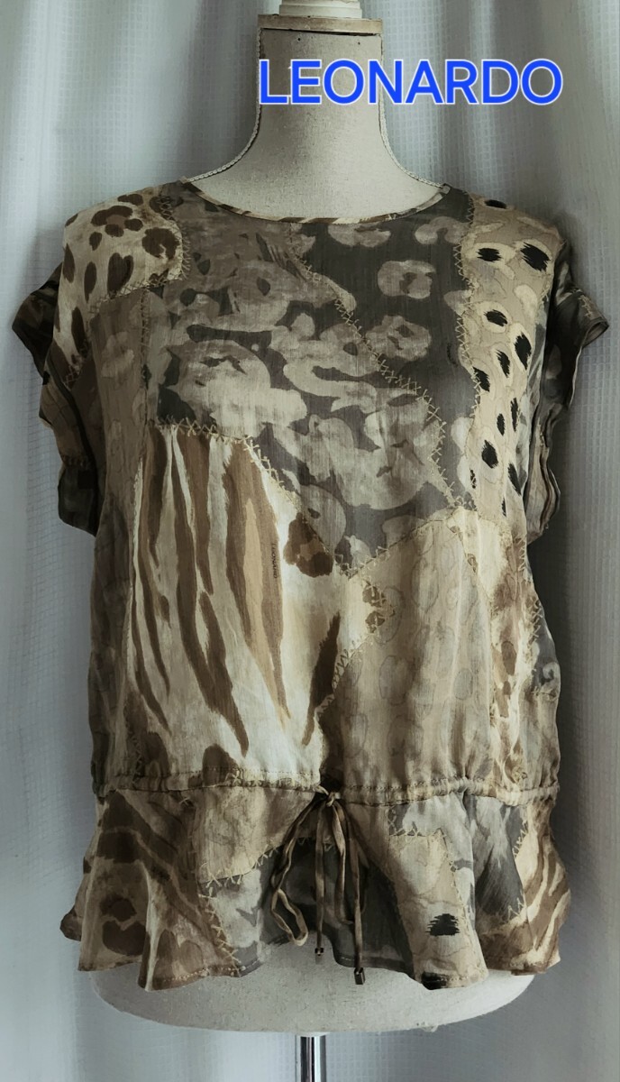 - 未使用レベル LEONARDO シルクシフォンのブラウス 半袖 アニマル