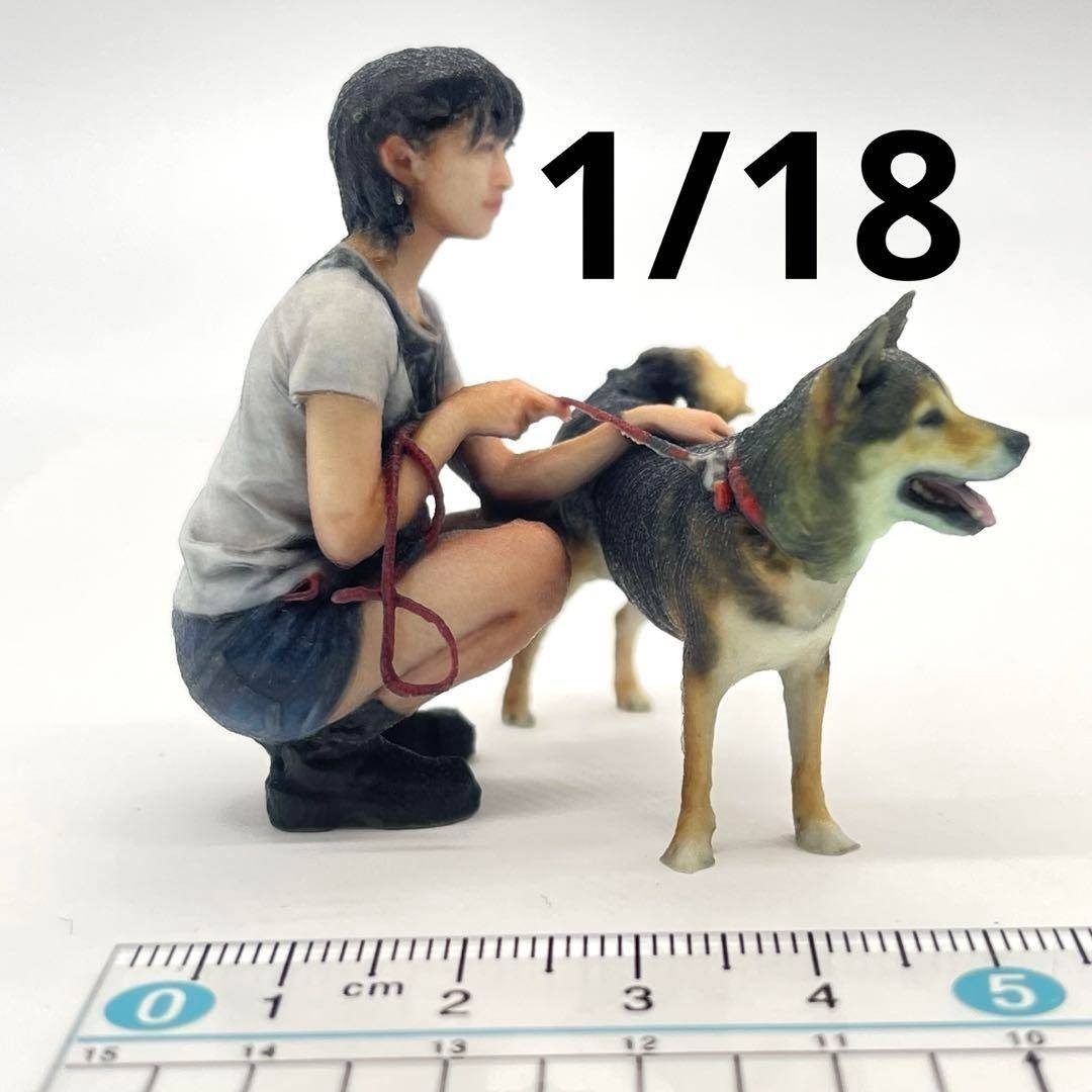 - 1/18 犬と女の子 フィギュア 完成品 1/64より大 ドールハウスに ミニチュアイメージ リアルフィギュア ミニカーに 3D
