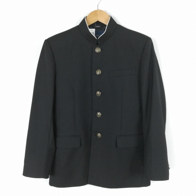 - 学生服 学ラン 160A 男子 上着 丸洗い可 ウール混 ラウンドカラー サージ 黒 中古 ランクC a3 JJ6654