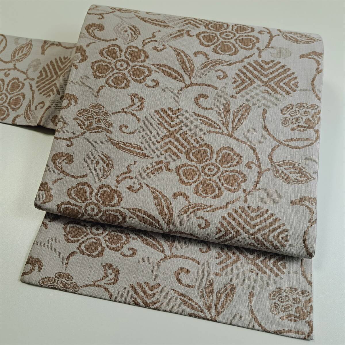 - 即決■着物の越田■幅31長さ370 正絹 名古屋帯 名古屋仕立て 花唐草 シックな色味 おしゃれ 六通 双◇み28J08