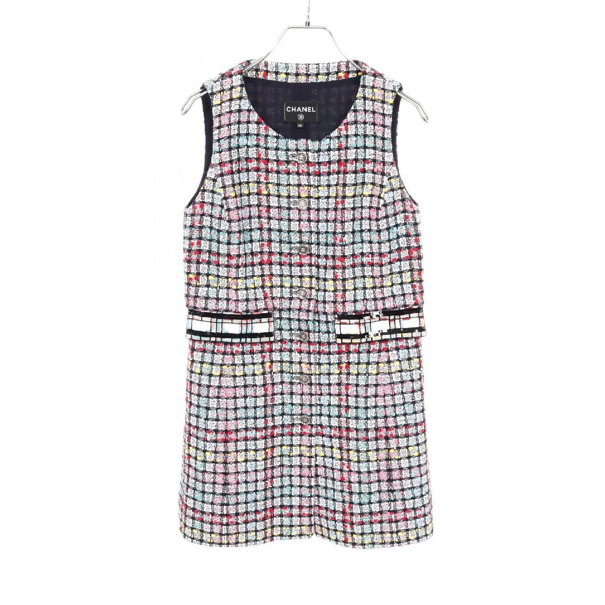 - シャネル ココマークボタン ツイード ロングジレ ブランドオフ CHANEL コットン ベスト 中古 レディース