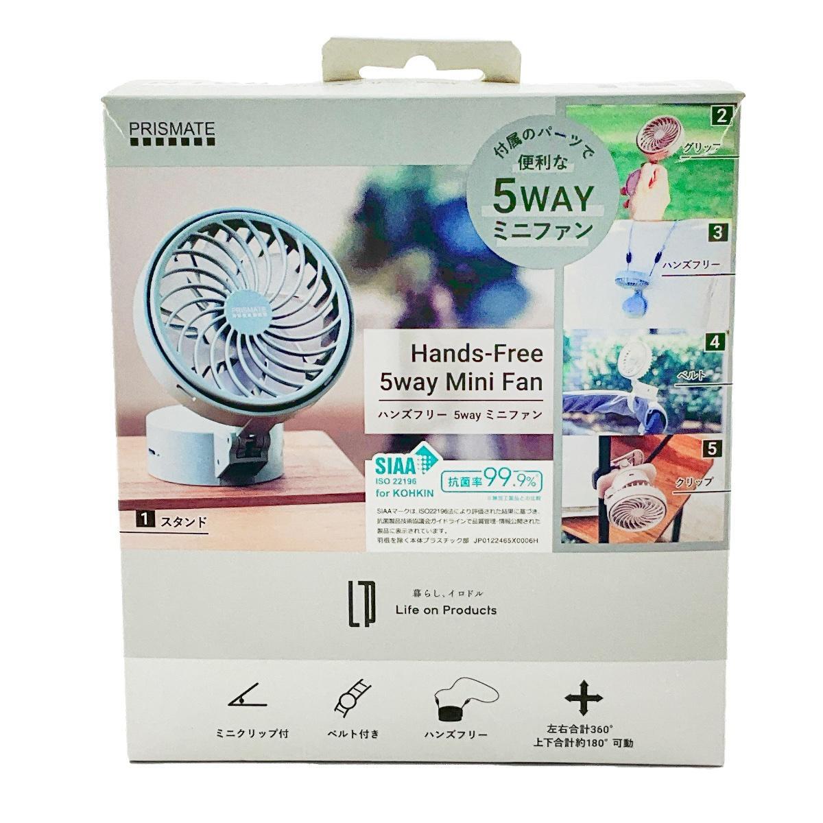 - ハンズフリー5WAY ミニファン ベビーカー 熱中症 PRISMATE PR-F063 スモーキーブルー