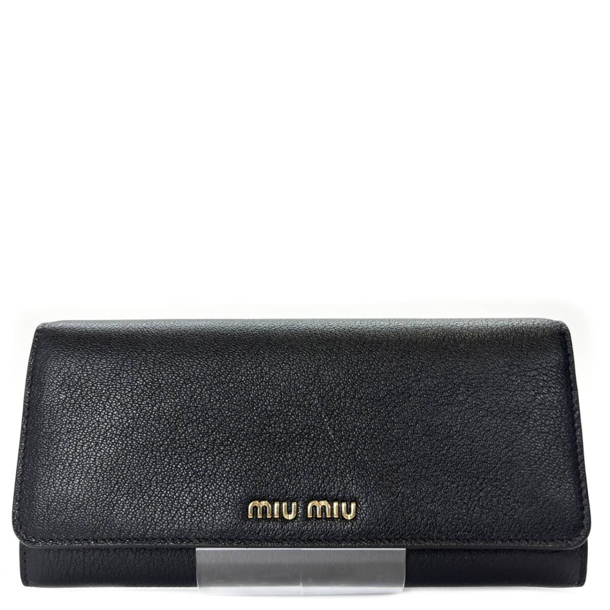 > 【新品同様】 MIUMIU ミュウミュウ 二つ折り長財布 パスケース付 レザー ブラック 5MH109