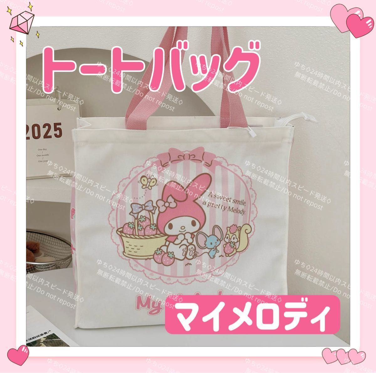 - おまけ◎ 海外限定 サンリオ リバーシブル トートバッグ エコバッグ サブバッグ 肩掛け 手提げ 収納 シンプル マイメロディ