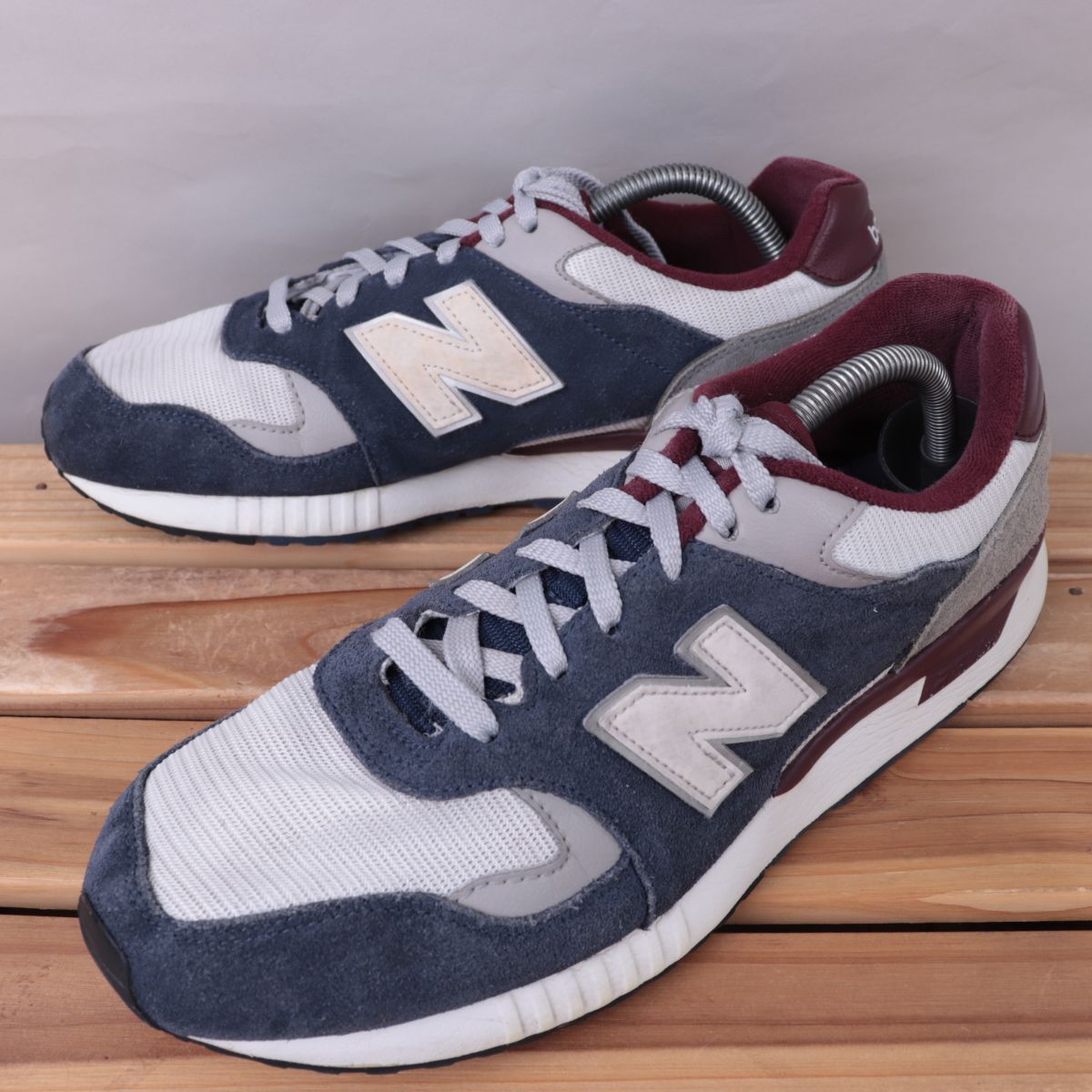 > z1542【570】ニューバランス 28.0cm位/紺 ネイビー 灰 グレー 赤系 エンジ 白 ホワイト newbalance メンズ スニーカー 中古