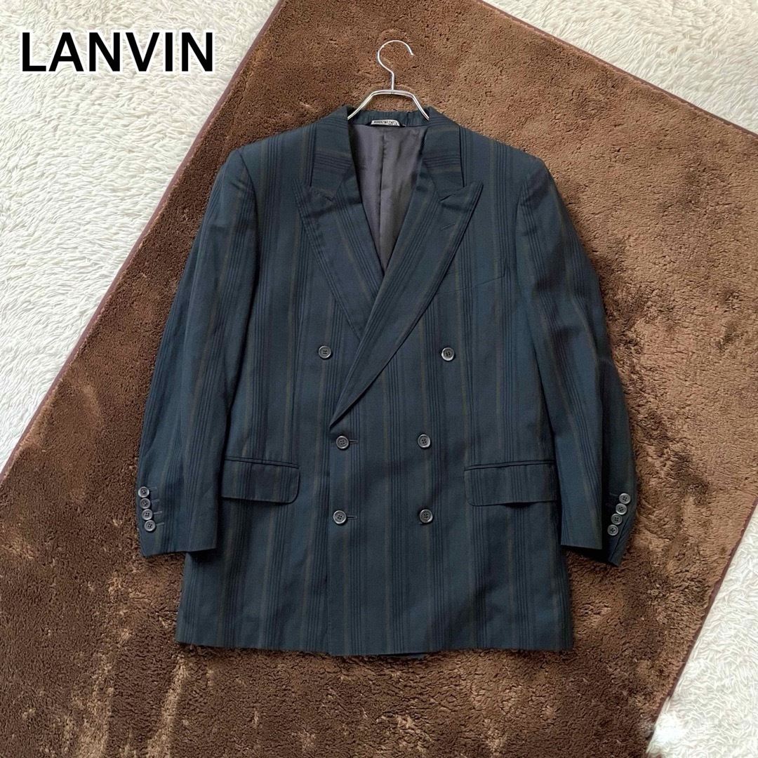 > ランバン ダブルブレスト テーラードジャケット ストライプ 総裏 ノーベント 46サイズ グリーン系 メンズ LANVIN