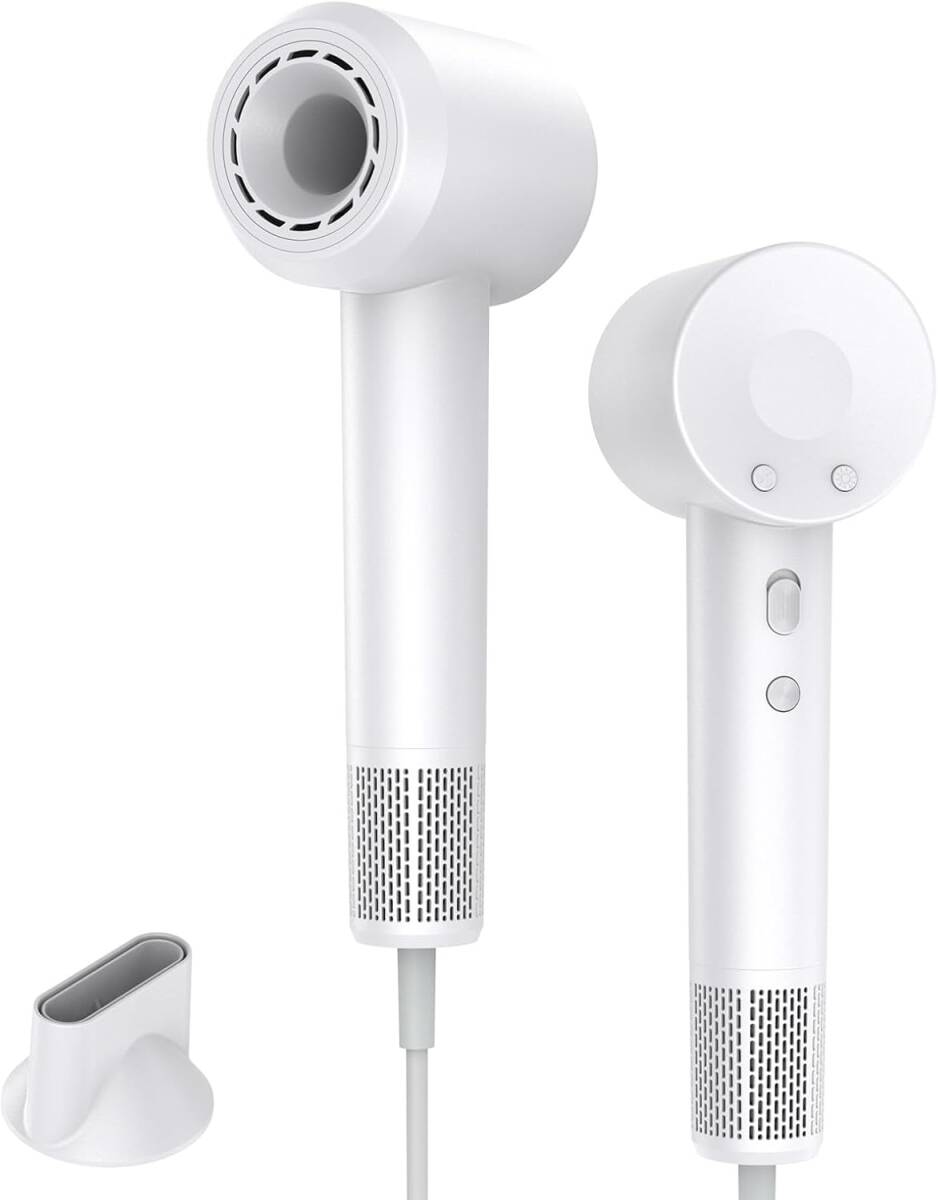 - ドライヤー 1300W大風量 速乾4段階 風温自由調節 高濃度マイナスイオン マグネティックノズル付き (ホワイト)