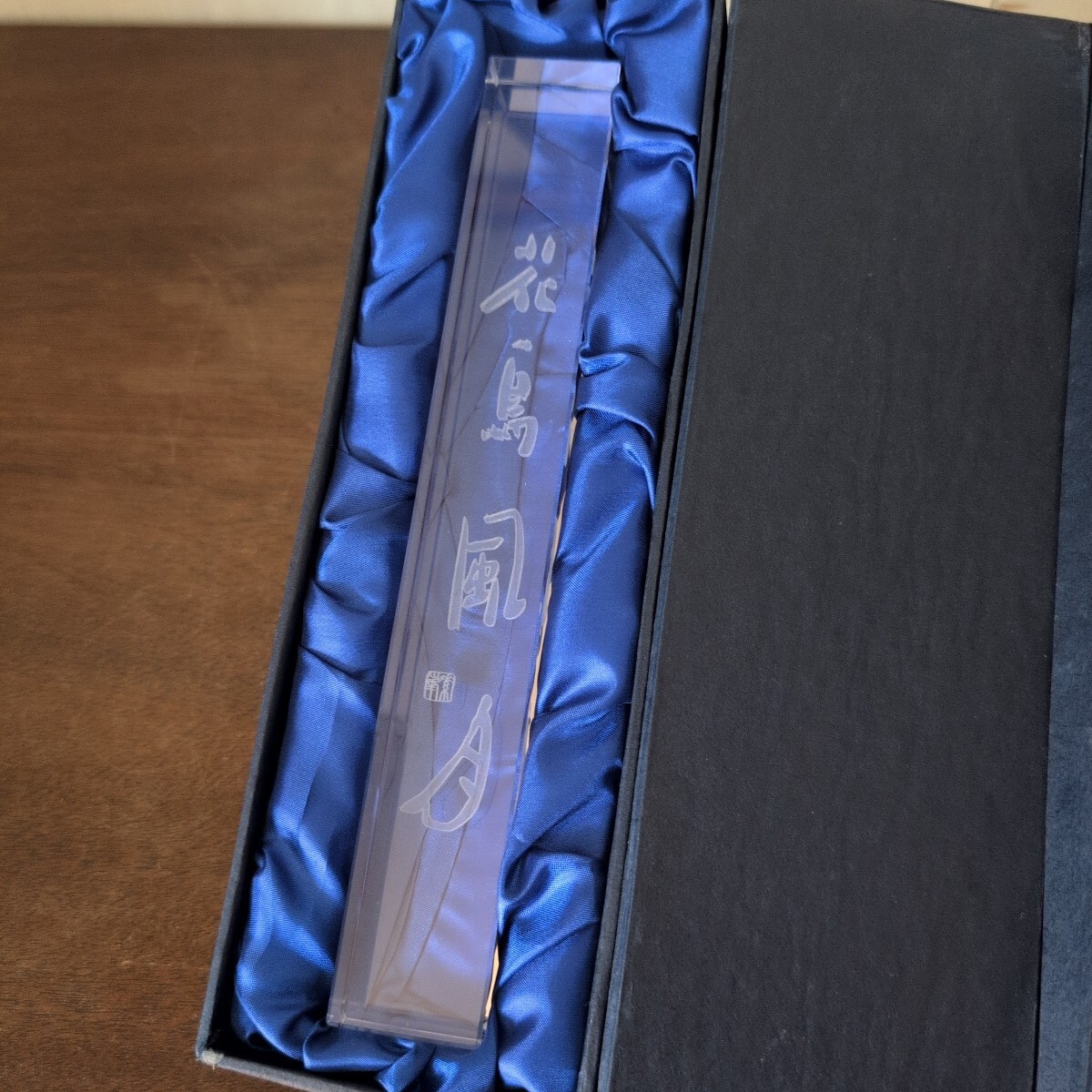 - 花鳥風月 レーザー加工 ガラス 文鎮 ペーパーウェイト クリスタルガラス?