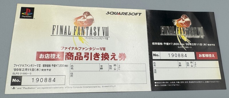 - ファイナルファンタジー8 商品引き換え券 予約券 即決
