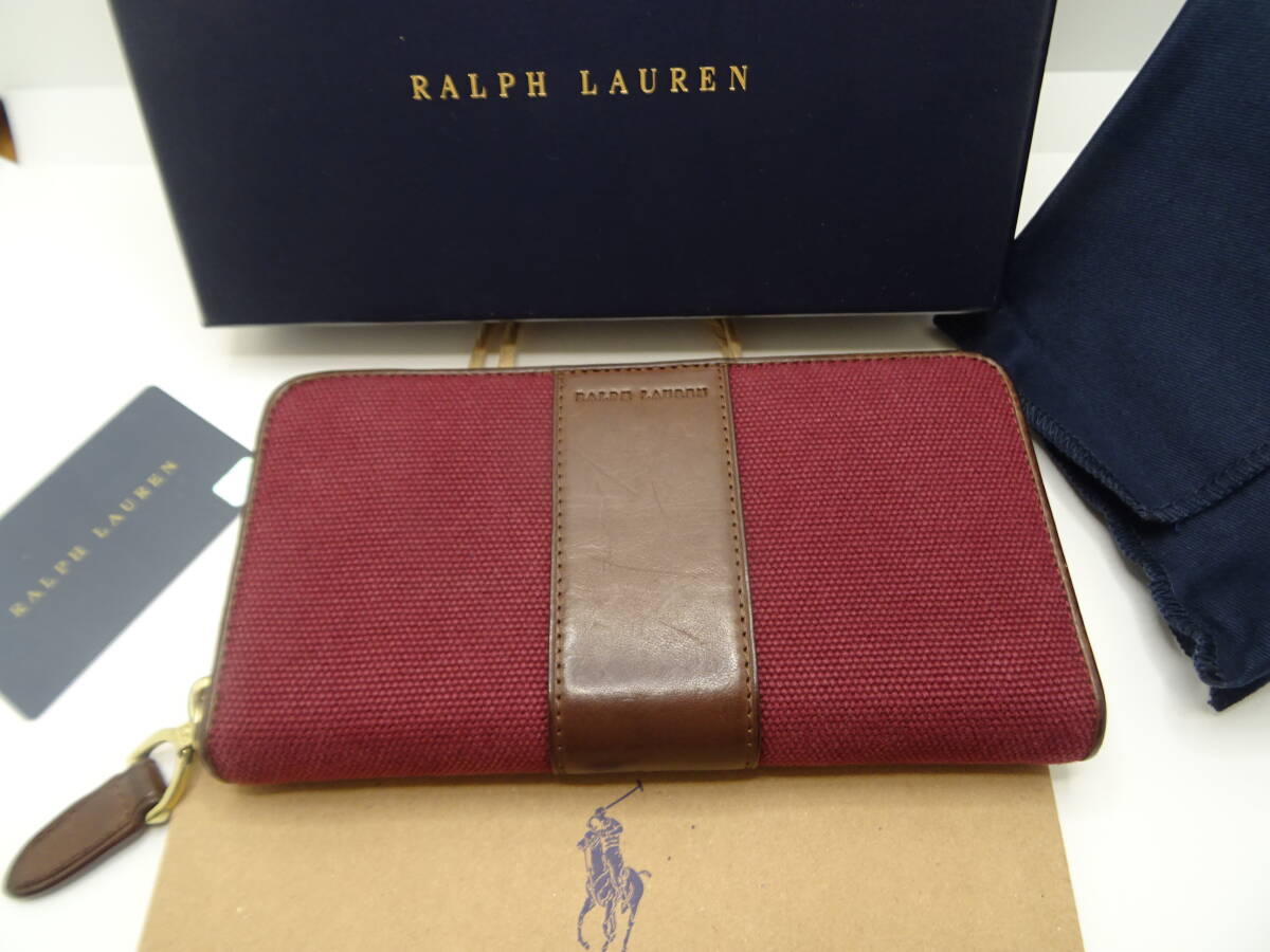 - 超美品ポロラルフローレンレディース長財布バーガンディ本革レザー