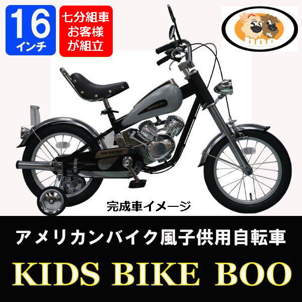 - 【送料無料】 KIDSBIKEBOO シルバー キッズバイクブー 子供用自転車 七分組自転車 16インチ アメリカン ハーレー風
