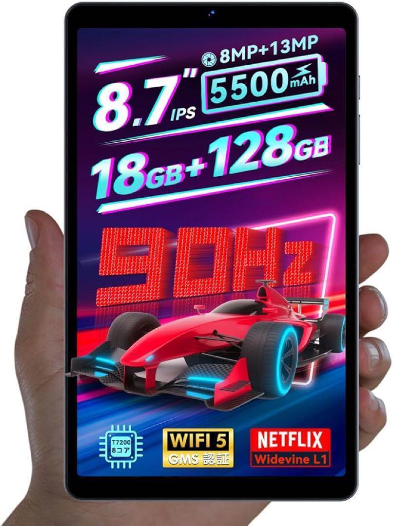 > タブレット8.7インチ Android15 18GB+128GB+1TB拡張可能