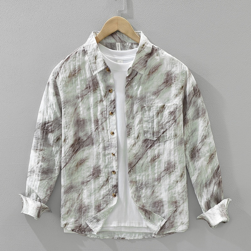- アロハシャツ 長袖シャツ シャツ 新品★メンズ トップス 軽量通気 開襟シャツ カジュアルシャツ【7732】グリーン L