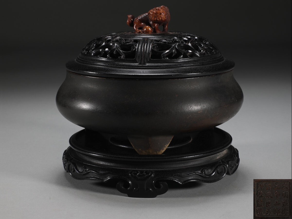 - 「大明宣徳五年監督工部官臣呉邦佐造 古銅彫 鬲式老銅香薰炉」旧銅器 置物擺件 賞物 中国古美術 旧蔵出