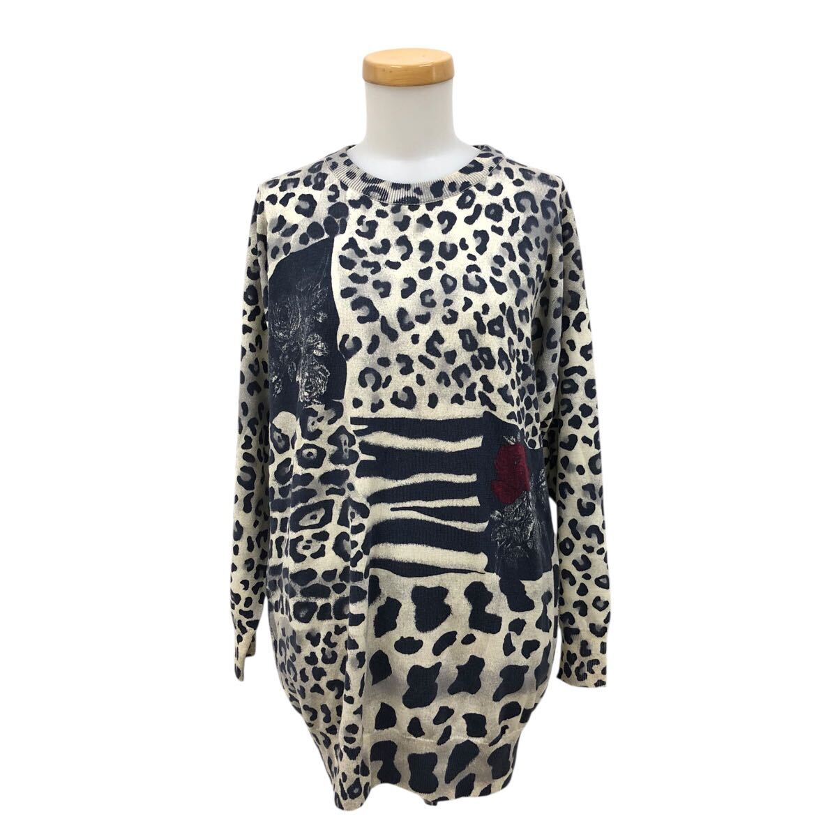 - 9Nm322-74 イタリア製 POi by KRIZIA ポイバイクリツィア ヒョウ レオパード 総柄 長袖 ウール ニット セーター トップス アイボリー系