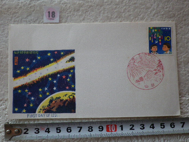 - FDC 季節の行事 たなばた 1962年 1貼1消 説明書無 カラースタンプ版●18●裏ヤケ●