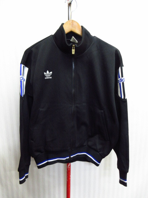 > アディダス 80s90sヴィンテージ トレフォイル刺繍ジャージトップ メンズM 黒 三つ葉ロゴ刺繍トラックジャケット トラックトップ 09041