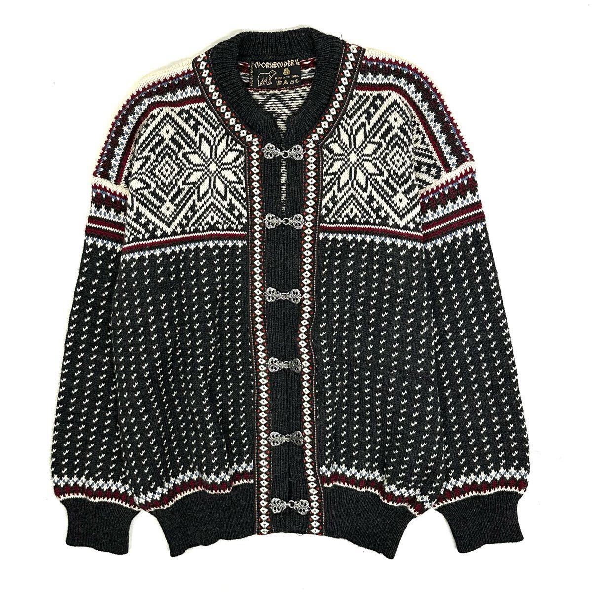 - 70's vintage ノルウェー製 NORLENDER ノルディック柄 厚手 ウール ニット フック カーディガン(M)メンズ セーター