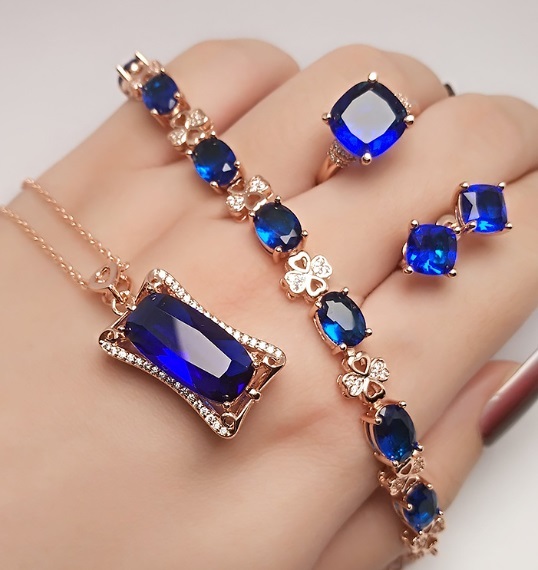 - 極美 サファイア ジュエリー4点 「ネックレス ・ピアス・リング・ブレスレット」 ジルコン キラキラ光る アクセサリー
