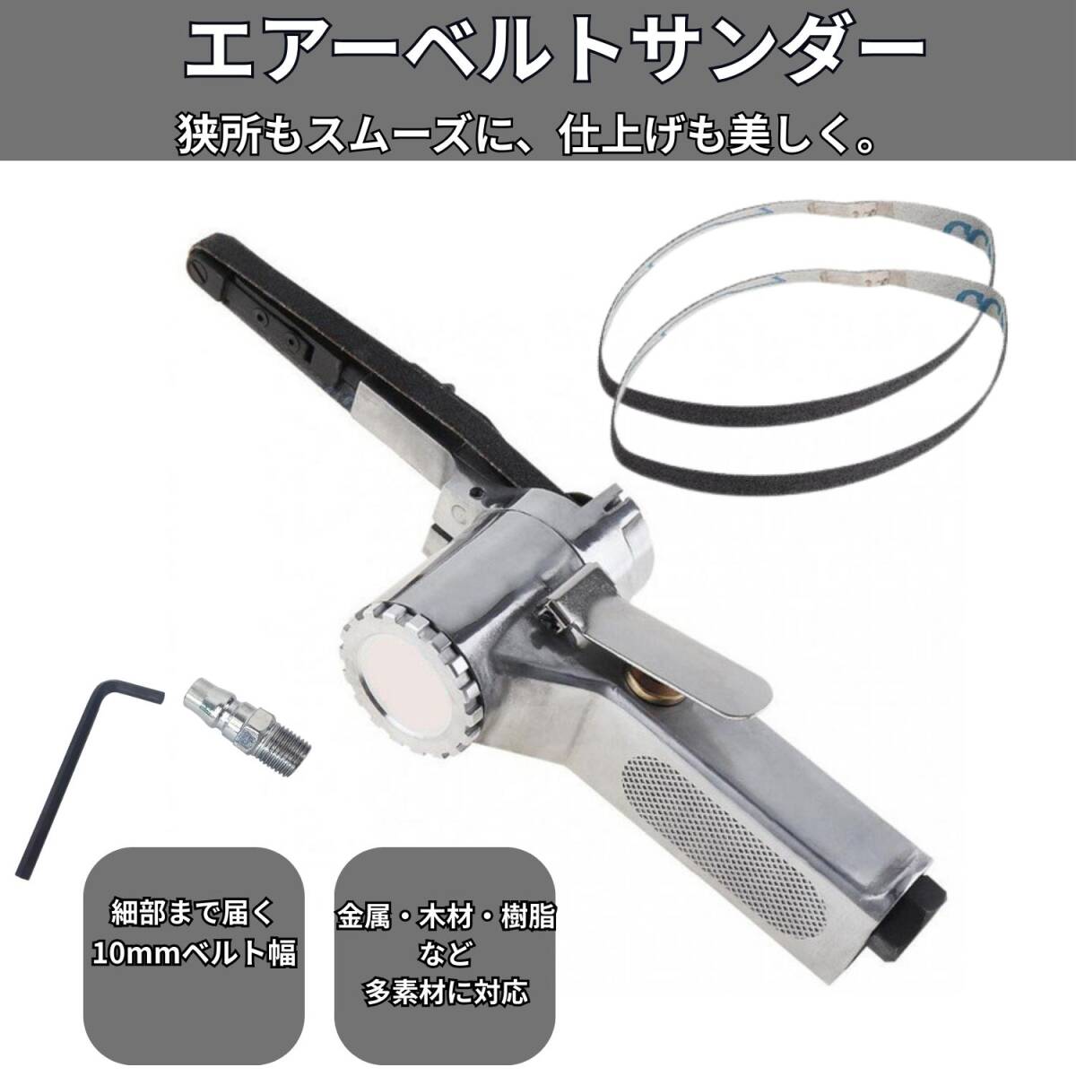 - エアー ベルトサンダー 10mm 360度角度調整可 ペーパー ベルト3本付き エアー式 常圧 日曜大工 木工 エア式回転やすり