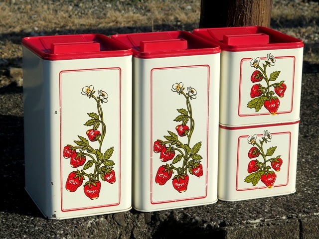 - '60S EKO Canisters strawberry pattern, Made in Canada / ビンテージ カナダ製 キッチン キャニスター デイジー 4piece
