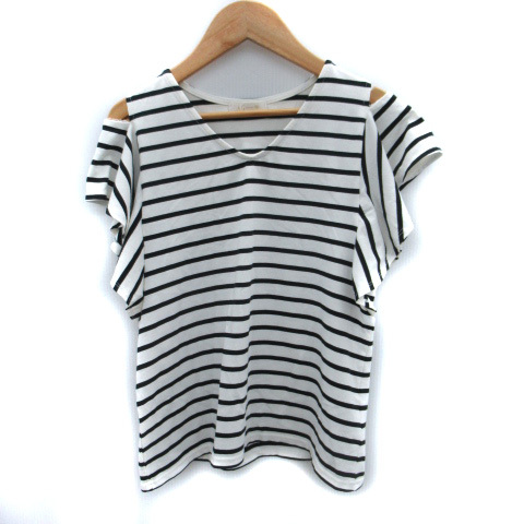 - エージーバイアクアガール AG by aquagirl カットソー 半袖 Vネック ボーダー柄 カットアウト 白 ホワイト 黒 ブラック レディース