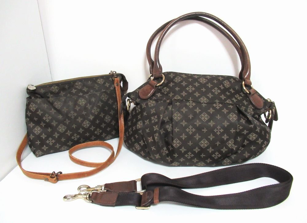 > ♪russet(ラシット)2WAYトートバッグ/斜め掛けもOK/russet(ラシット)付属の2WAY(ショルダーバッグ&ポーチ)ロゴ柄ナイロン&レザー/合計2個