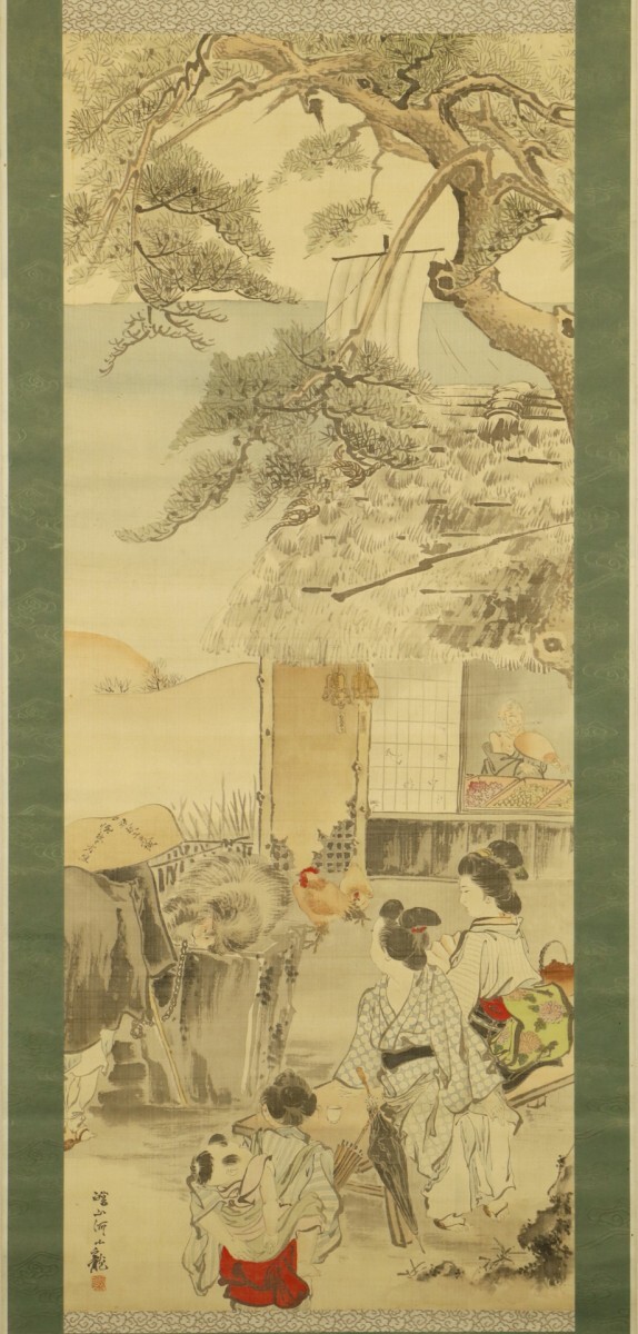 - 【真作】掛軸「河田小龍 浜茶屋入舟図」幕末明治 日本画家 土佐 狩野永岳・中林竹洞師事 漂巽紀畧 絵画
