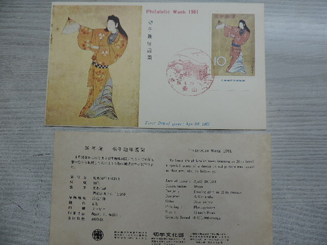 - ★舞踊屏風の「女舞姿」★ 切手趣味週間 初日カバー 昭和36年4月20日・東山 10円切手 切手文化部発行