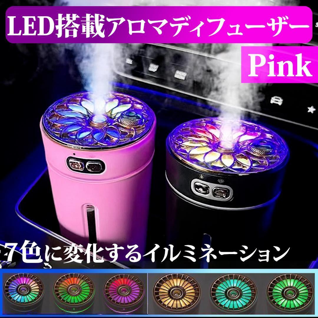 - LEDイルミネーション加湿器 車内 アロマディフューザー USB給電 ピンク